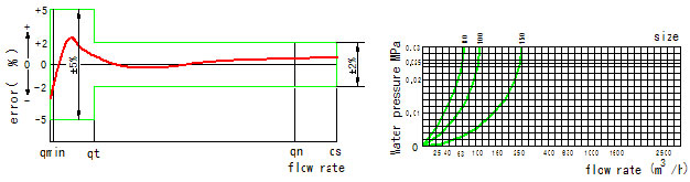 MAXIMUM PERMISSIBLE ERROR: From transitional flow up to maximum flow both inclusive: ¡À2%; From minimum flow inclusive up to transitional flow: ¡À5%.